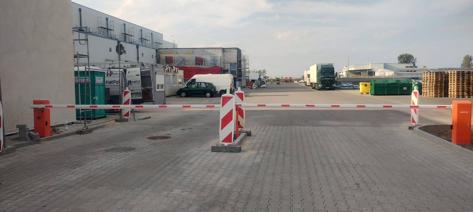 Instalacja systemu kontroli wjazdu z anteną UHF, szlabanem Safe S5035 oraz szyfratorem.