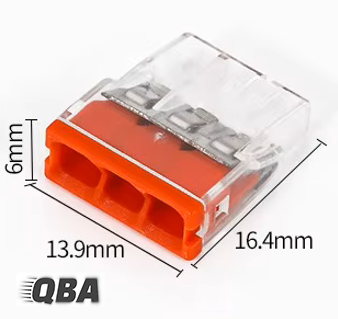 Szybkozłączki instalacyjne Safe QBA wyposażone w 3 wciski, stosowane są przy łączeniu przewodów elektrycznych w puszkach elektroinstalacyjnych, w maszynach, w lampach, szafkach rozdzielczych i innych pracach elektroinstalacyjnych nawet nisko prądowych.