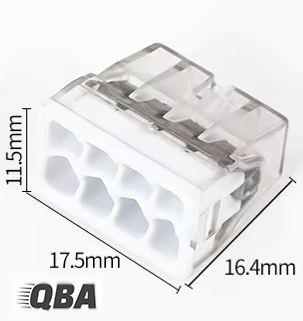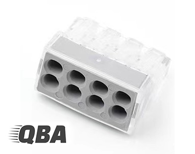 Szybkozłączki instalacyjne Safe QBA wyposażone w 8 wcisków, stosowane są przy łączeniu przewodów elektrycznych w puszkach elektroinstalacyjnych, w maszynach, w lampach, szafkach rozdzielczych i innych pracach elektroinstalacyjnych nawet nisko prądowych.